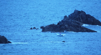 In the twilight, we were amazed to see this guy rowing through the rocks and we assume onwards to St Agnes.