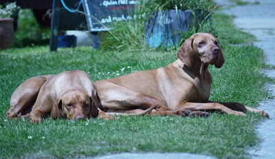 Two very contented Vizla ladies belonging to the Baker on St Martins