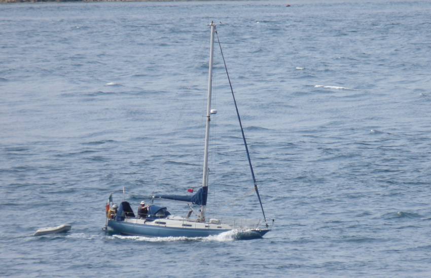 Nice looking French Yacht finding a bit of swell as she comes in around The Garrison
