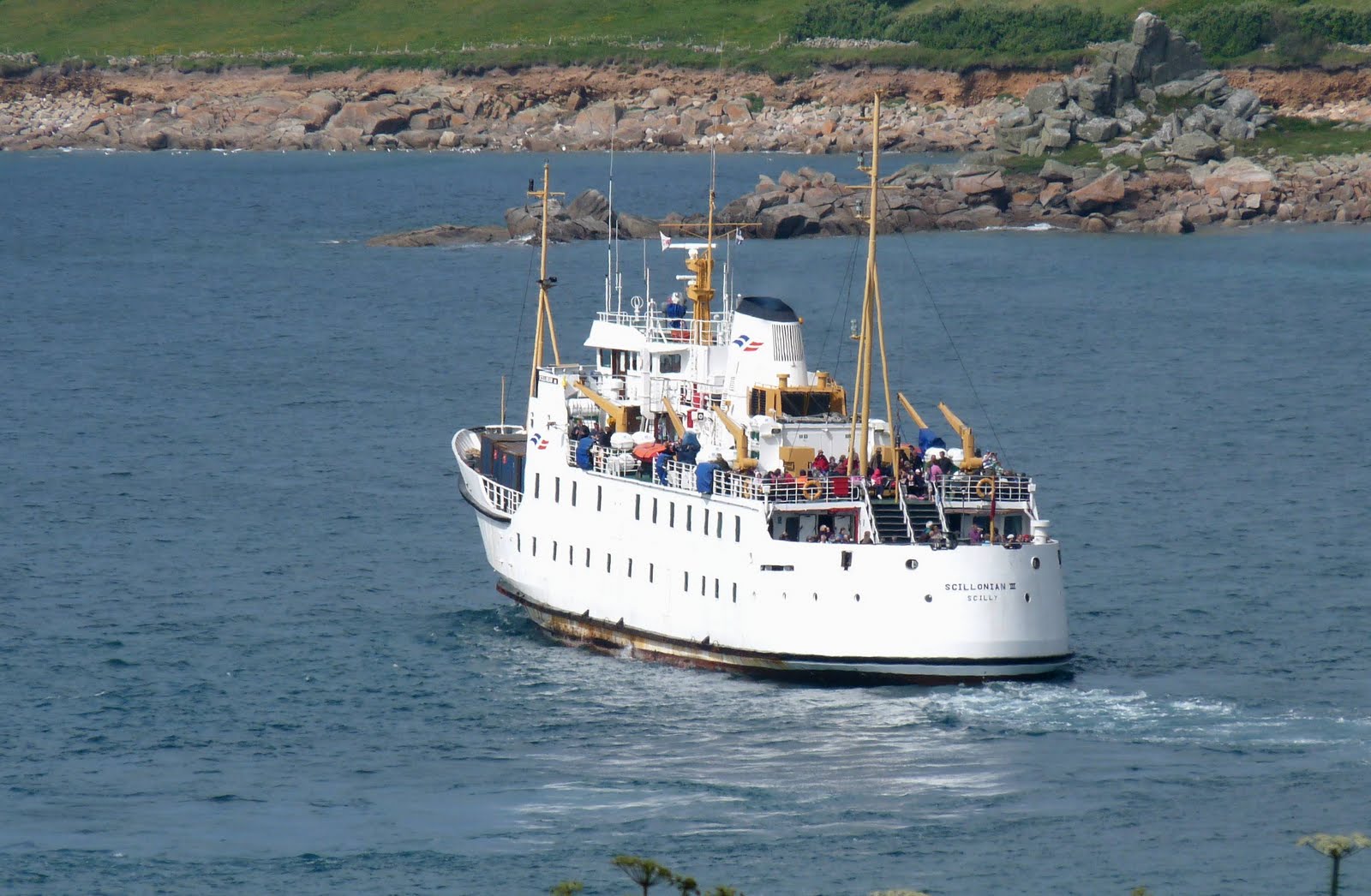Scillonian III leaving for Penzance as I start to unpack the bags