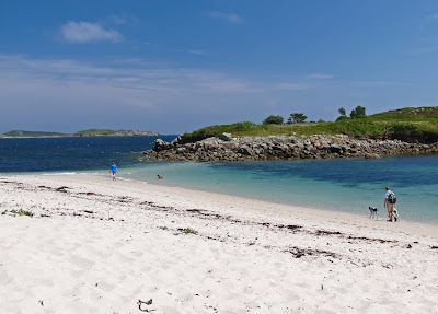 Since it was such a hot day and Charlie was struggling a bit, we got a taxi up to the end of Pelistry Lane. We were dropped by this super wall which was the inspiration for our "Scillonian Wall" we then walked down to the beach & then up to Carn Vean Cafe