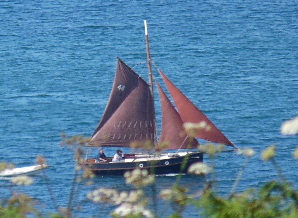 Spotted John & Kay sailing into the Harbour from our room & nipped out into the garden to take this. Such a nice looking boat. Sorry, if I was taller I could have avoided the plants !