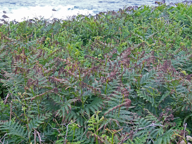 Walking the dogs around The Garrison that evening, we noticed how badly the Bracken is windburned. Shows how much wind they've had this Spring & early Summer