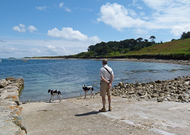 Jim and the dogs at Pendrethen - previous dog Daisy used to like a gentle swim here if the weather was hot, but neither Wooster or Tilly even paddled !