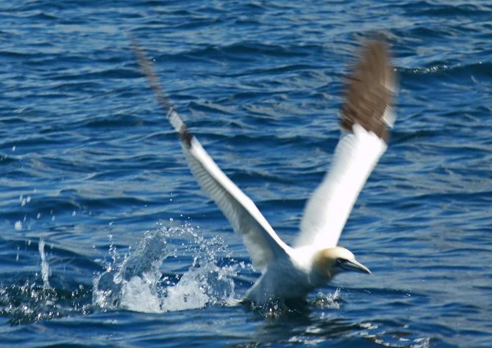 Not a very good photo, but it just shows the size of a Gannets wings and the power it needs to lift itself out of the water after a dive !