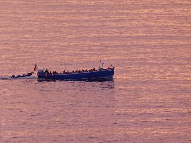 On a lovely pink sea reflecting the sunset Dave Badcock brings back the St Agnes supper party on Britannia