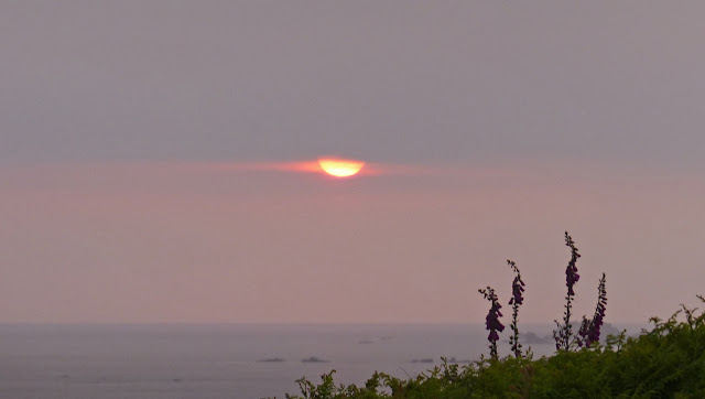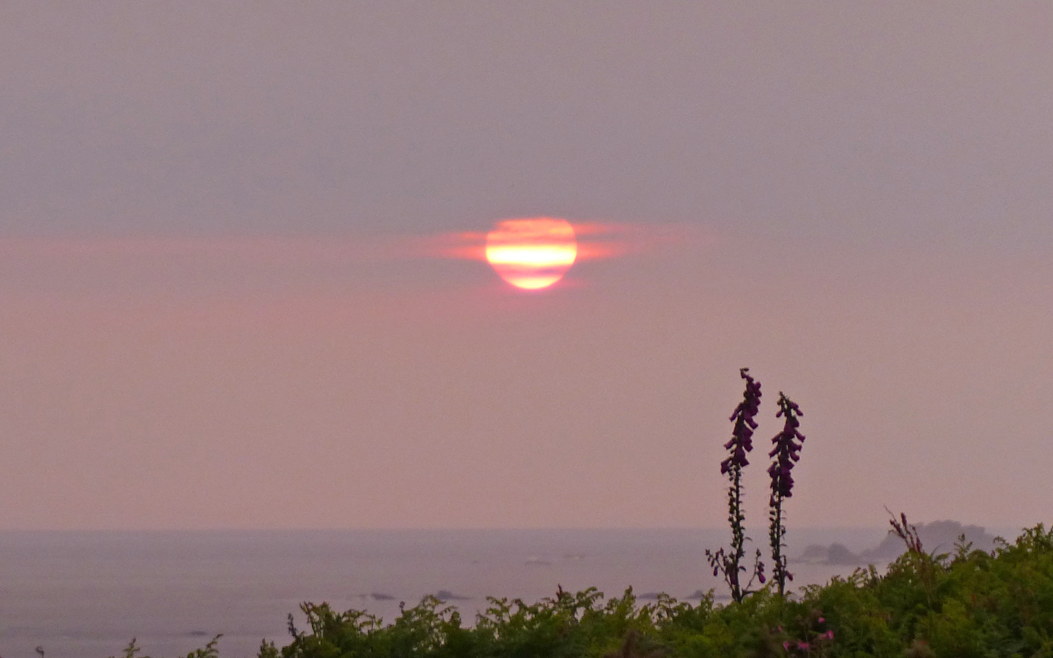 Looking East as it started to drizzle we could just about make out this rather pink rainbow