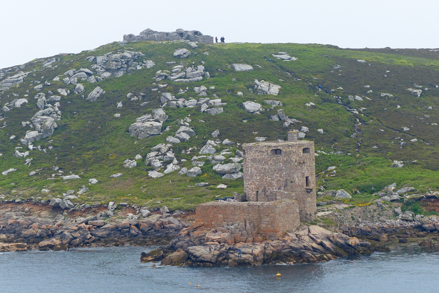 Looking over towards Tresco with King Charles Castle on the top and Cromwells Castle down below