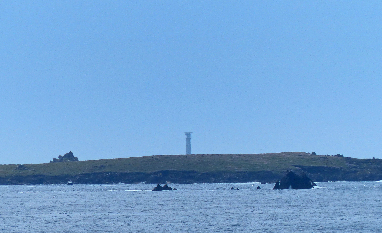 Last view of Bishop Rock Lighthouse over the top of Annet